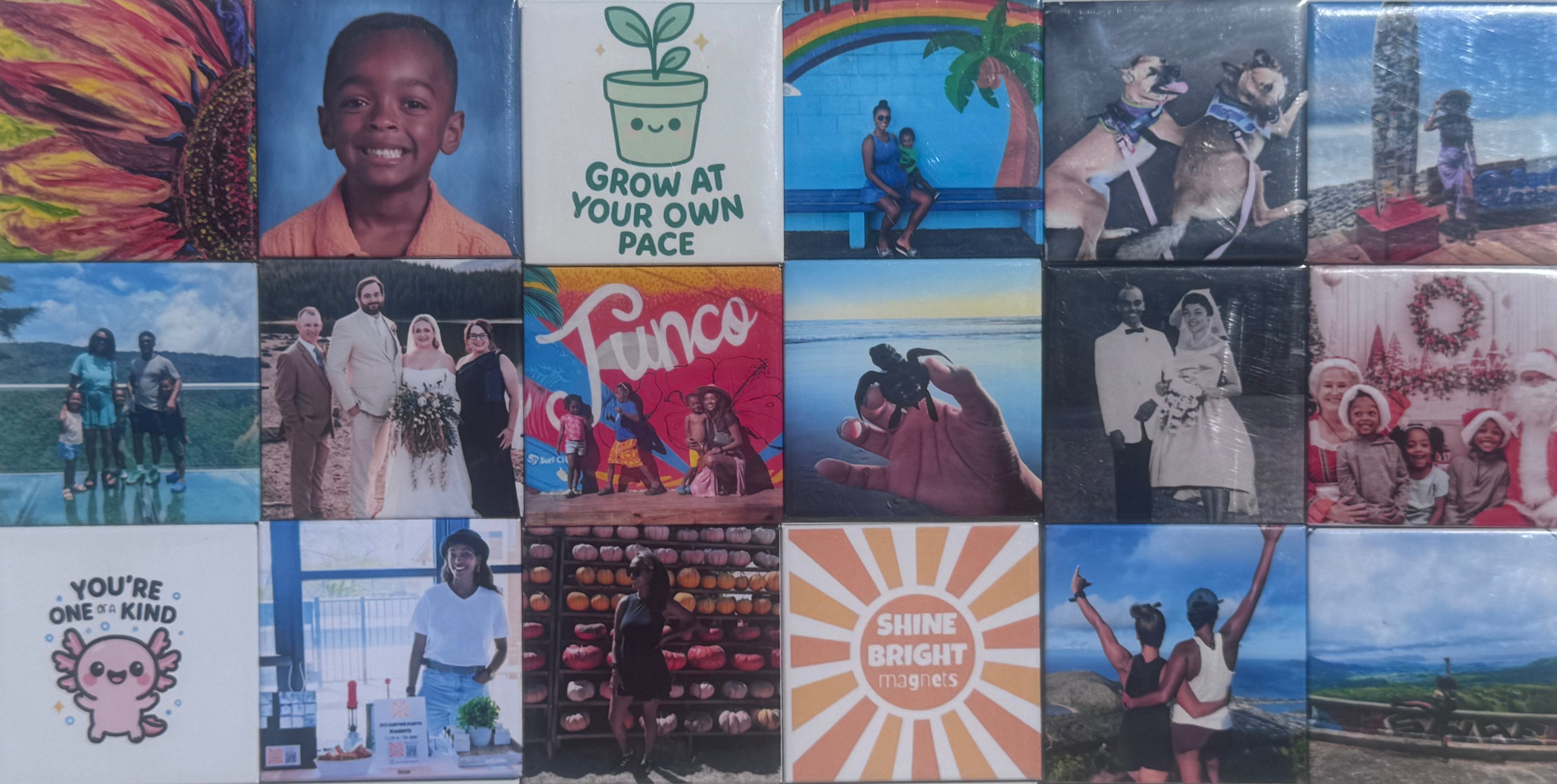 Crafted by hand, made for memories. These 2x2" magnets are perfect for gifts, keepsakes, smiles, your fridge and more!